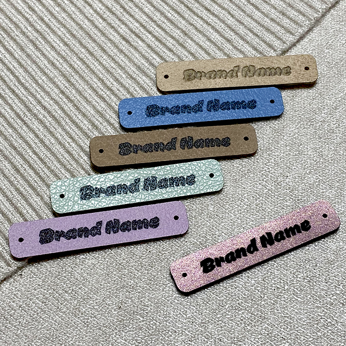 Personalized label EP-M107 made of artificial leather for clothes, bags, shoes and various clothing accessories.