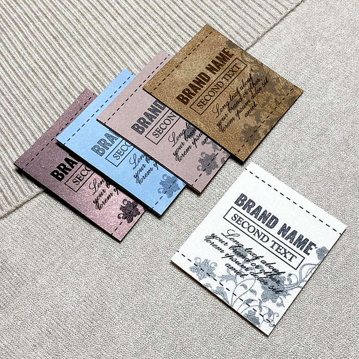 This Faux leather label Model EP-M141 can be customized just in a few seconds, very simply and quickly using the graphic builder, where you can choose the color of the faux leather, you can insert your own logo or any other graphics with a complex design, and you can customize the label with your own text, for example your brand name, a slogan, manufacturer's name, and the country where your product was manufactured.