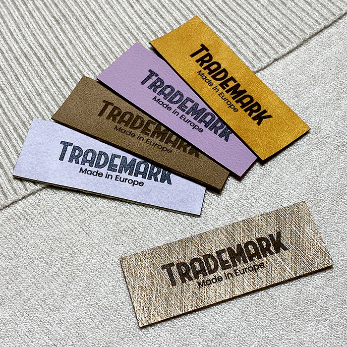 Personalized label EP-M156 made of artificial leather for clothes, bags, shoes and various clothing accessories.