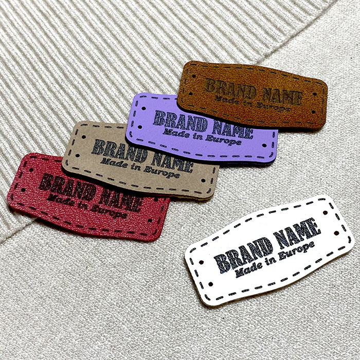 Personalized label EP-M114 made of artificial leather for clothes, bags, shoes and various clothing accessories.