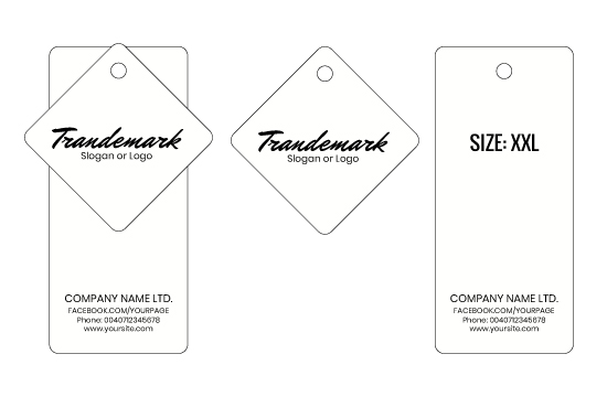 Custom hang tag HT-M94 for textile products, such as ladies clothing, men's clothing and clothing accessories.