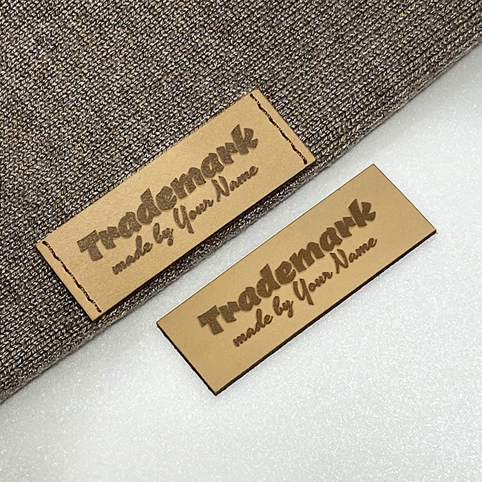 Custom genuine leather label, laser engraved and cut according to the dimensions shown.