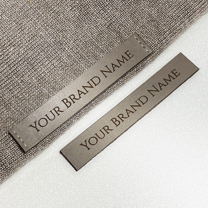 Natural leather label EP-M27 for sewing on clothes, hoodies, sweaters, scarves, hats and clothing items like jeans and pants, customized with the name and logo of the brand. This leather label model is made of high-quality genuine leather, using the latest generation equipment and professional laser engraving or embossing methods.