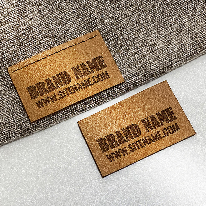 Custom genuine leather label, laser engraved and cut according to the dimensions shown.