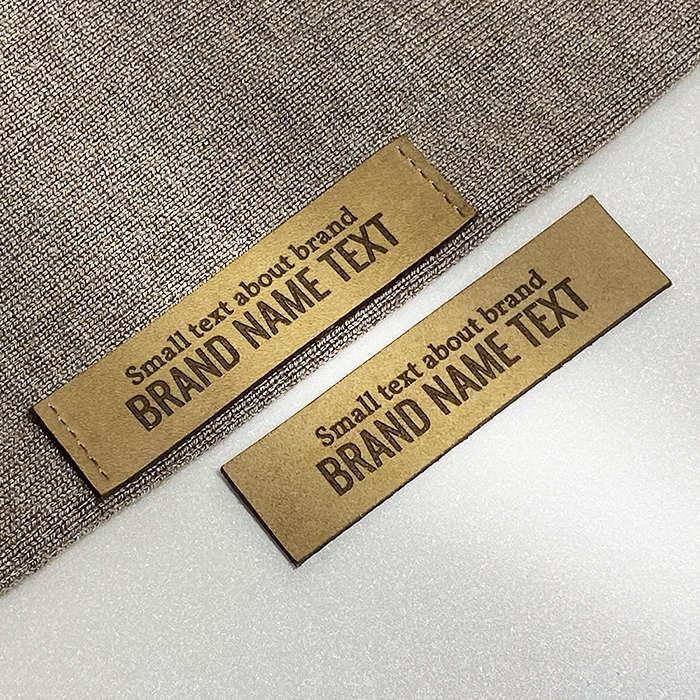 Leather label for clothes and clothing accessories EP-M35, made of natural leather, personalized by laser engraving with the manufacturer's name or logo. This leather label model is made of high-quality genuine leather, using the latest generation equipment and professional laser engraving or embossing methods.