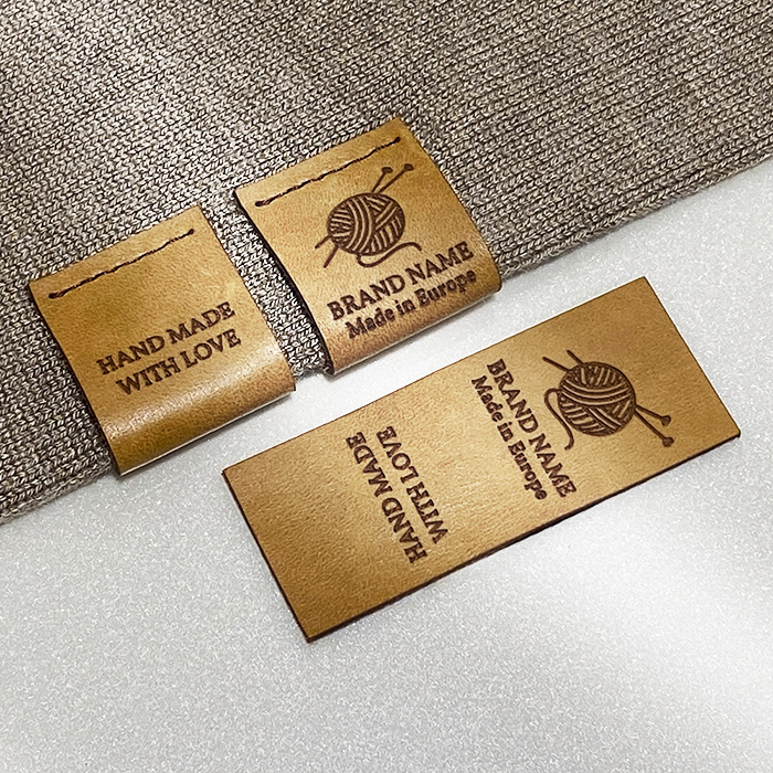 Personalized label EP-M61 made of genuine leather for clothes, bags, shoes and various clothing accessories.