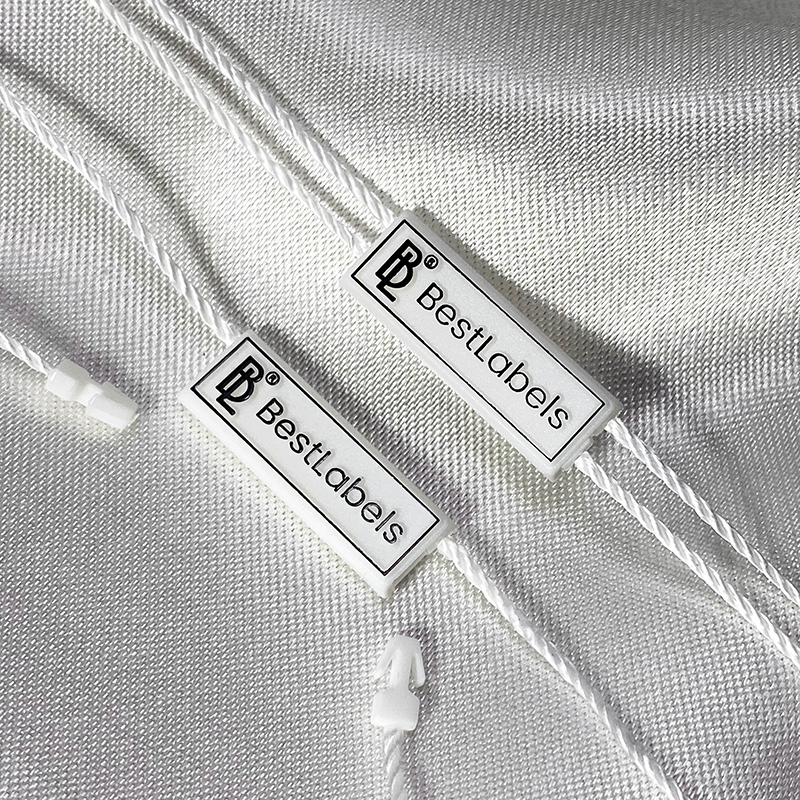 Custom plastic seal tag ST-M144 for fashion products, such as clothes, footwear, bags, jewelry, clothing accessories, etc.
