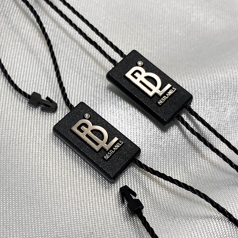 Custom plastic seal tag ST-M181 for fashion products, such as clothes, footwear, bags, jewelry, clothing accessories, etc.