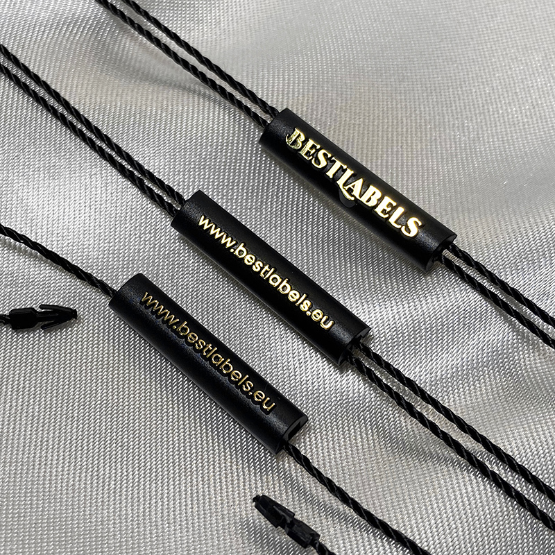 Plastic seal with cylindrical shape ST-M230 and an attractive design and custom text on two sides, suitable for various clothing items such as jeans, pants, ladies and men suits, and many other clothes, shoes and bags. This type of seal is made of high quality materials, using the most advanced technologies in the field.
