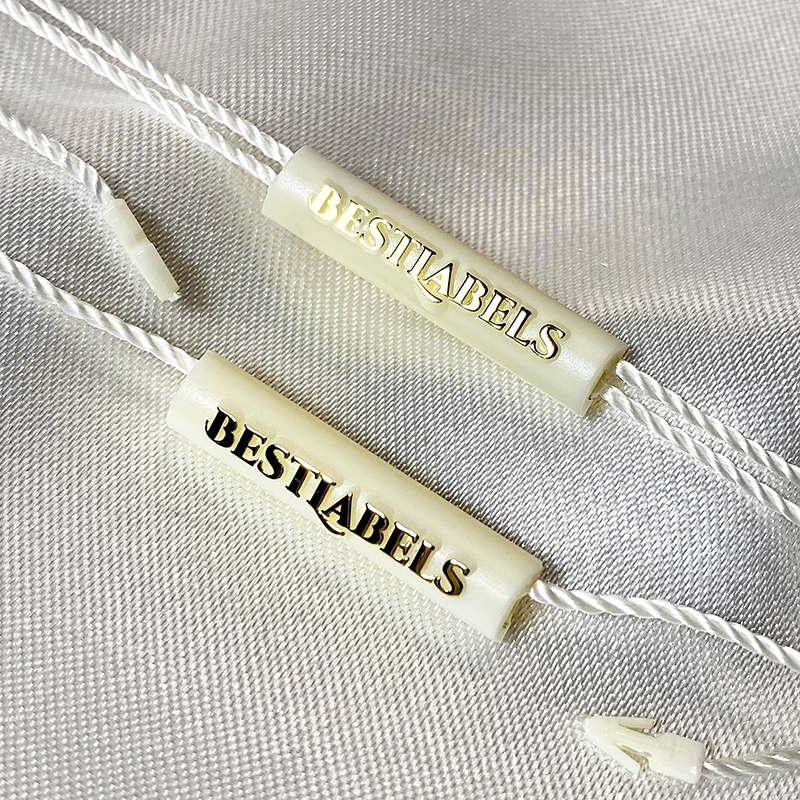 Plastic seal with cylindrical shape ST-M235 and an attractive design and custom text on two sides, suitable for various clothing items such as jeans, pants, ladies and men suits, and many other clothes, shoes and bags. This type of seal is made of high quality materials, using the most advanced technologies in the field.