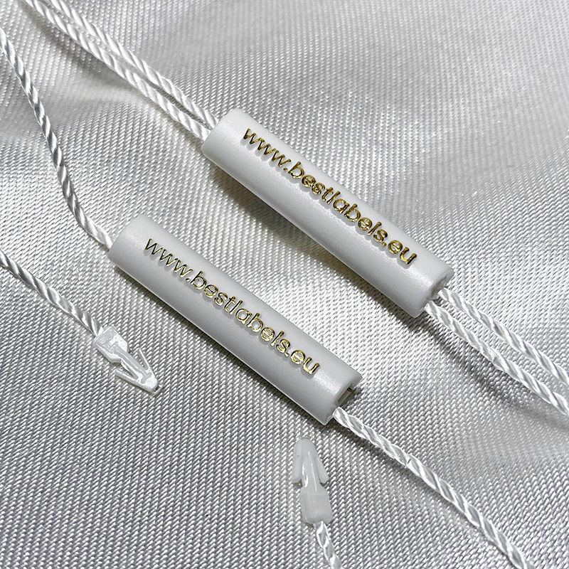 Plastic seal with cylindrical shape ST-M239 and an attractive design and custom text on two sides, suitable for various clothing items such as jeans, pants, ladies and men suits, and many other clothes, shoes and bags. This type of seal is made of high quality materials, using the most advanced technologies in the field.
