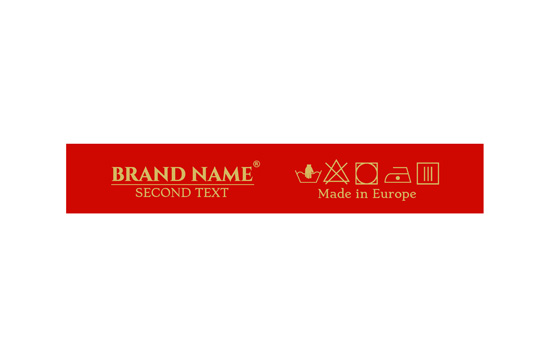 Laundry care label customized with washing symbols, and the Brand name or logo, model TL-105 suitable for any textile product, especially clothing items. This type of textile label is made using the most advanced technologies in the digital printing field on a textile support. The labels are printed on a special satin by thermal transfer method, with an impressive print quality and high wash resistance.