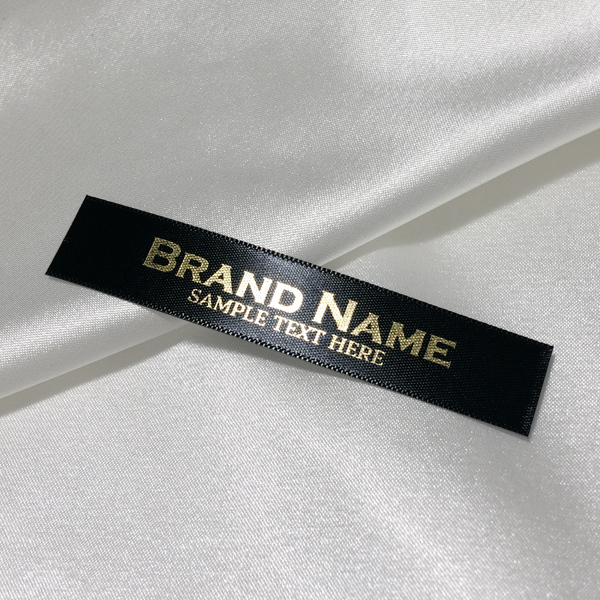 Custom label TL-M129 printed on satin fabric suitable for clothing, clothes accessories, and other textile products.