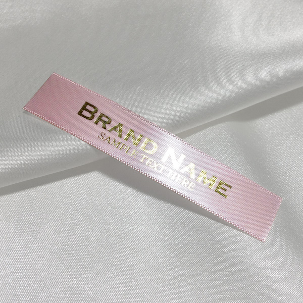 Custom label TL-M93 printed on satin fabric suitable for clothing, clothes accessories, and other textile products.