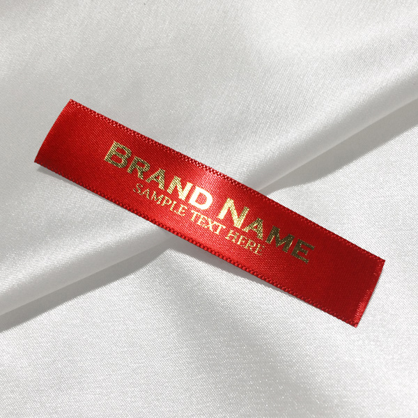 Custom label TL-M99 printed on satin fabric suitable for clothing, clothes accessories, and other textile products.