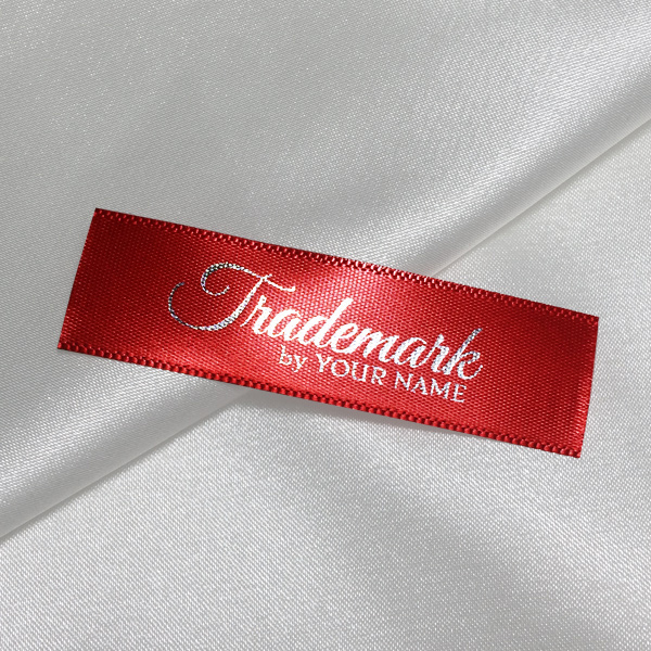 Custom label TL-M139 printed on satin fabric suitable for clothing, clothes accessories, and other textile products.