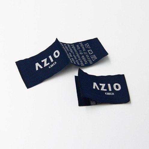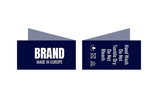 Textile label folded in the middle, customized with Digital High Density embroidered inscriptions.