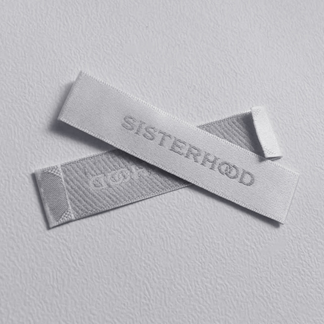 Simple and elegant label with small dimensions digitally embroidered with the Brand name or with a logo, made of textile material in preferential colors. This type of woven label is made of high quality materials, using the most advanced technologies from Digital embroidery field at industrial level.