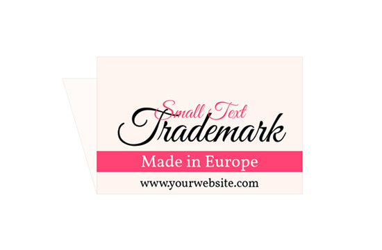 Woven label with an elegant design Digital embroidered on a textile material Sweet Style, customized with various texts, logo and washing and maintenance symbols. This type of woven label is made of high quality materials, using the most advanced technologies from Digital embroidery field at industrial level.